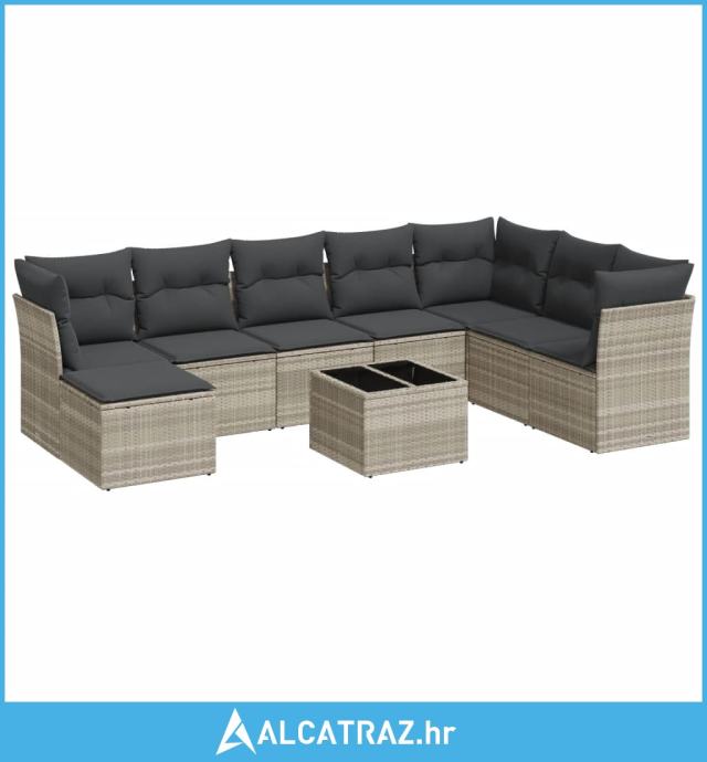 9-dijelni set vrtnih sofa od poliratana s jastucima svjetlosivi - NOVO