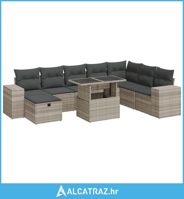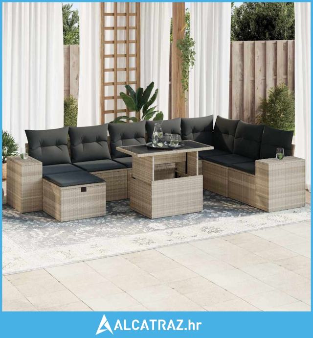 9-dijelni set vrtnih sofa od poliratana s jastucima svjetlosivi - NOVO