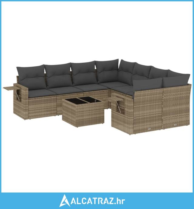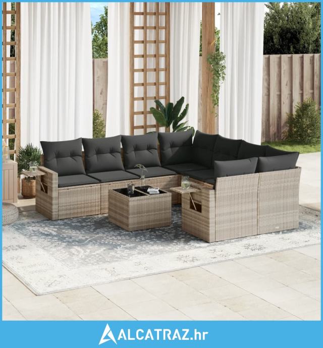 9-dijelni set vrtnih sofa od poliratana s jastucima svjetlosivi - NOVO