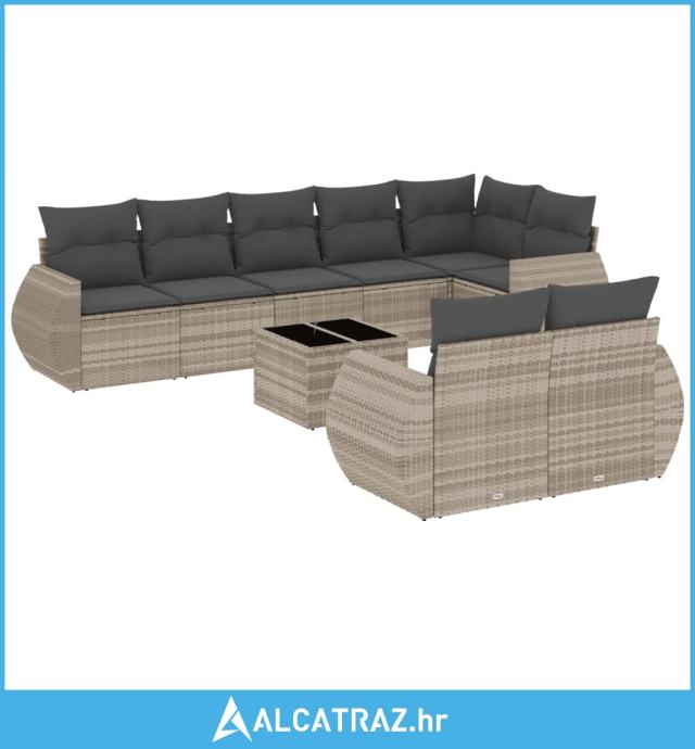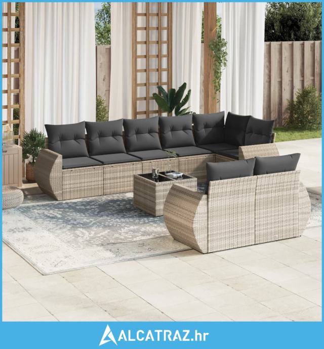 9-dijelni set vrtnih sofa od poliratana s jastucima svjetlosivi - NOVO