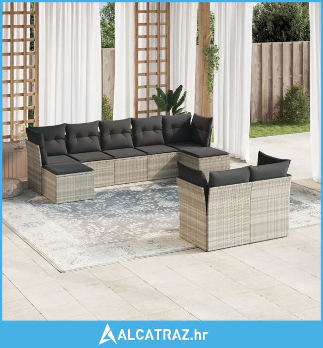 9-dijelni set vrtnih sofa od poliratana s jastucima svjetlosivi - NOVO