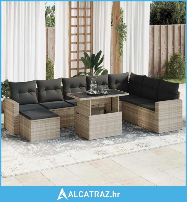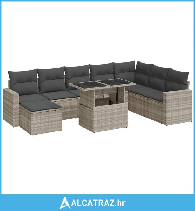 9-dijelni set vrtnih sofa od poliratana s jastucima svjetlosivi - NOVO
