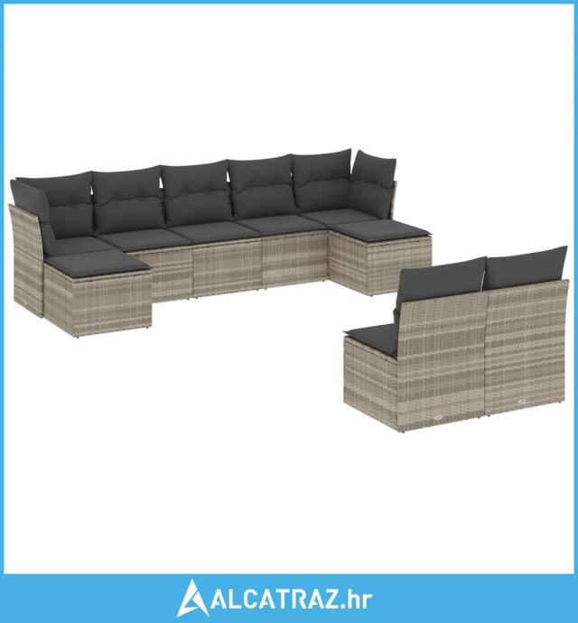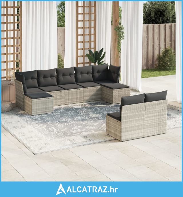 9-dijelni set vrtnih sofa od poliratana s jastucima svjetlosivi - NOVO