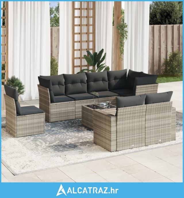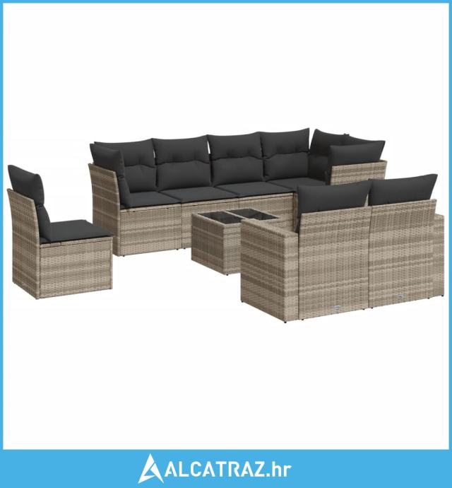 9-dijelni set vrtnih sofa od poliratana s jastucima svjetlosivi - NOVO
