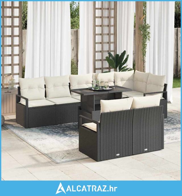 9-dijelni set vrtnog namještaja s jastučićima crni poli ratan - NOVO