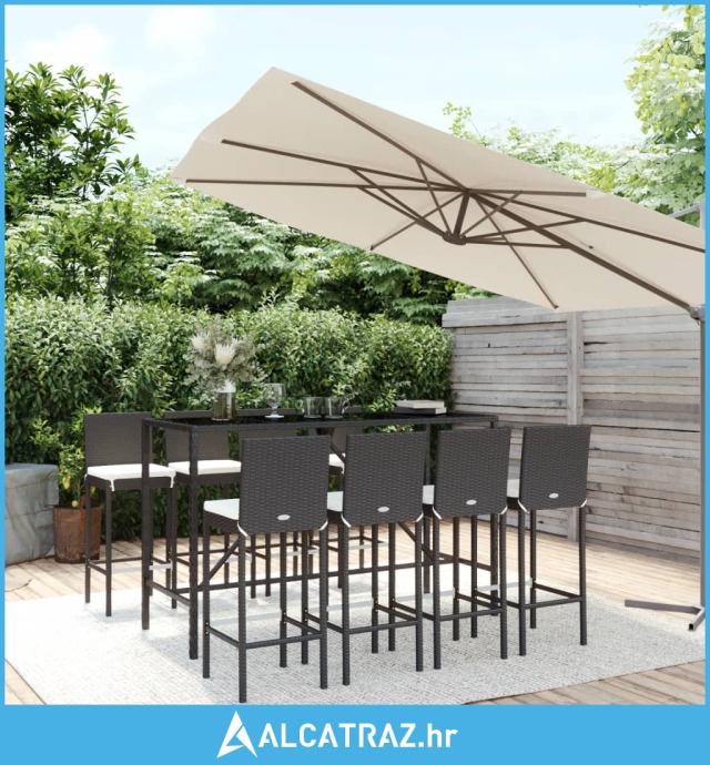 9-dijelni vrtni barski set s jastucima crni od poliratana - NOVO