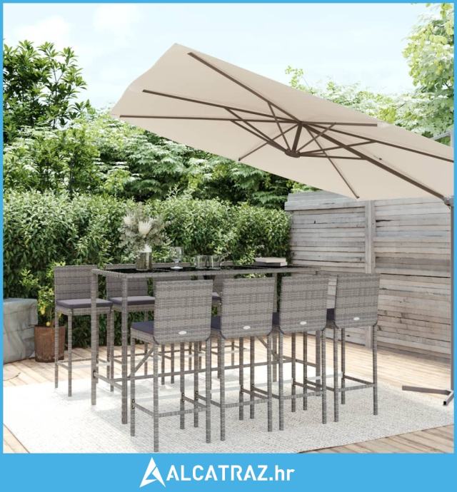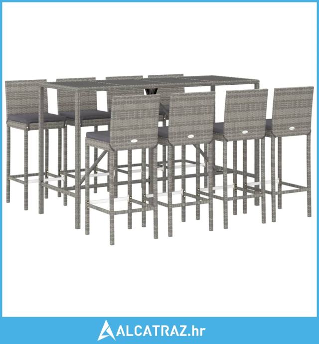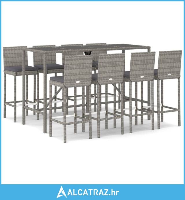 9-dijelni vrtni barski set s jastucima sivi od poliratana - NOVO