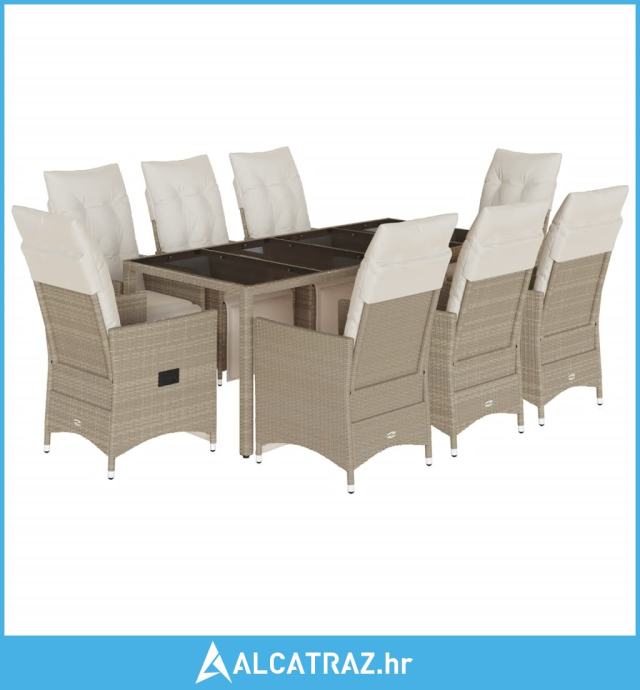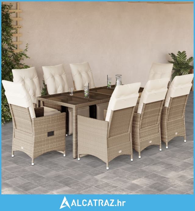 9-dijelni vrtni bistro set od poliratana s jastucima bež - NOVO