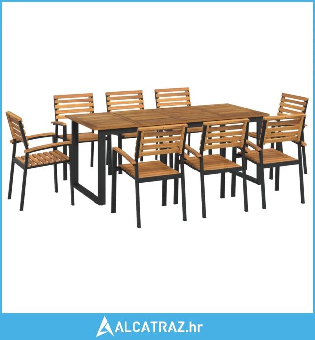 9-dijelni vrtni blagovaonski set od bagremovog drva i metala - NOVO
