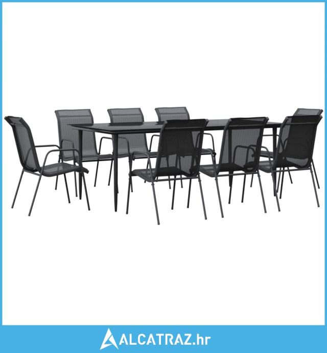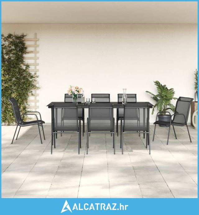 9-dijelni vrtni blagovaonski set crni od čelika i tekstilena - NOVO