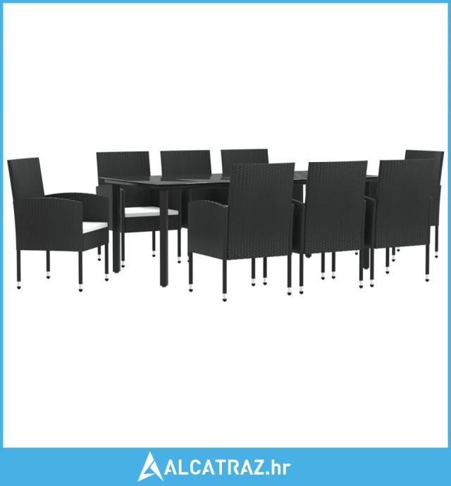 9-dijelni vrtni blagovaonski set crni od poliratana i čelika - NOVO