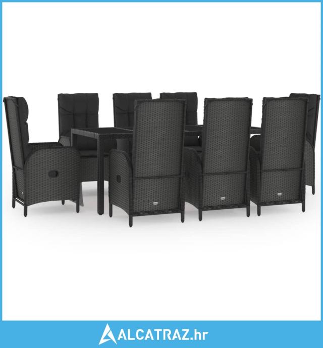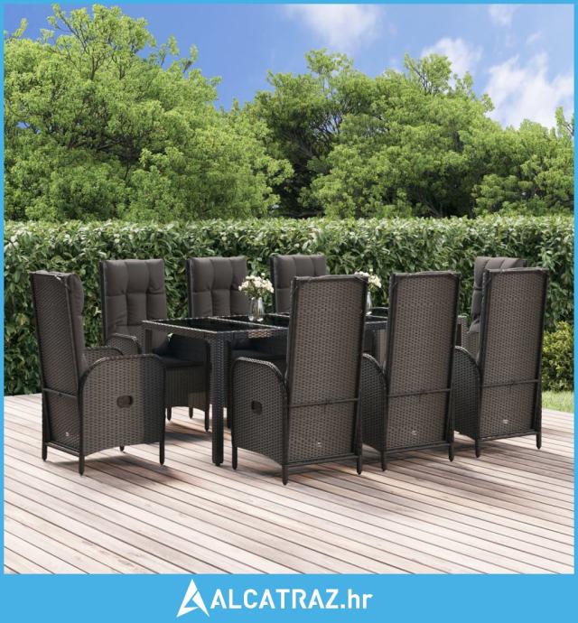 9-dijelni vrtni blagovaonski set crno-sivi od poliratana - NOVO