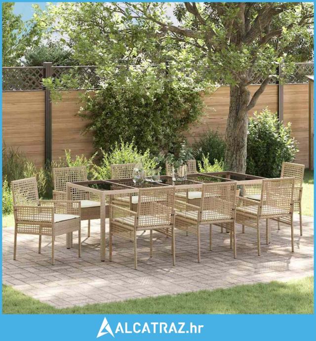 9-dijelni vrtni blagovaonski set s jastučićima bež poliratan - NOVO
