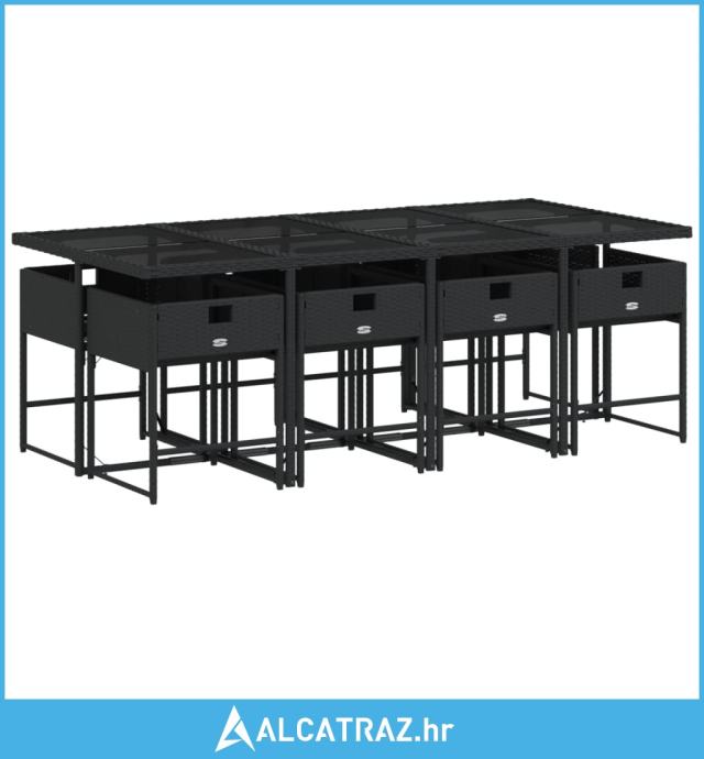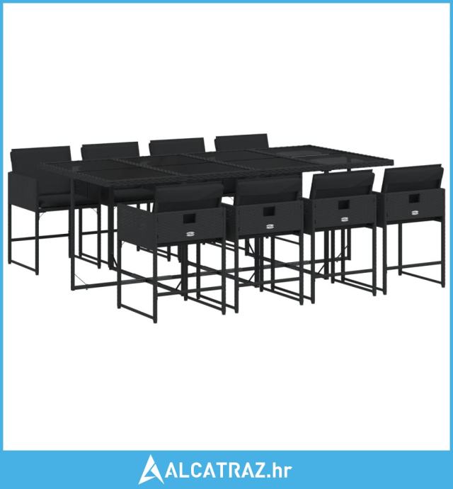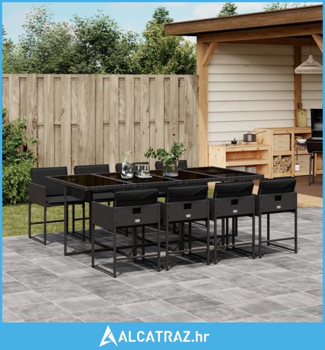 9-dijelni vrtni blagovaonski set s jastucima crni od poliratana - NOVO