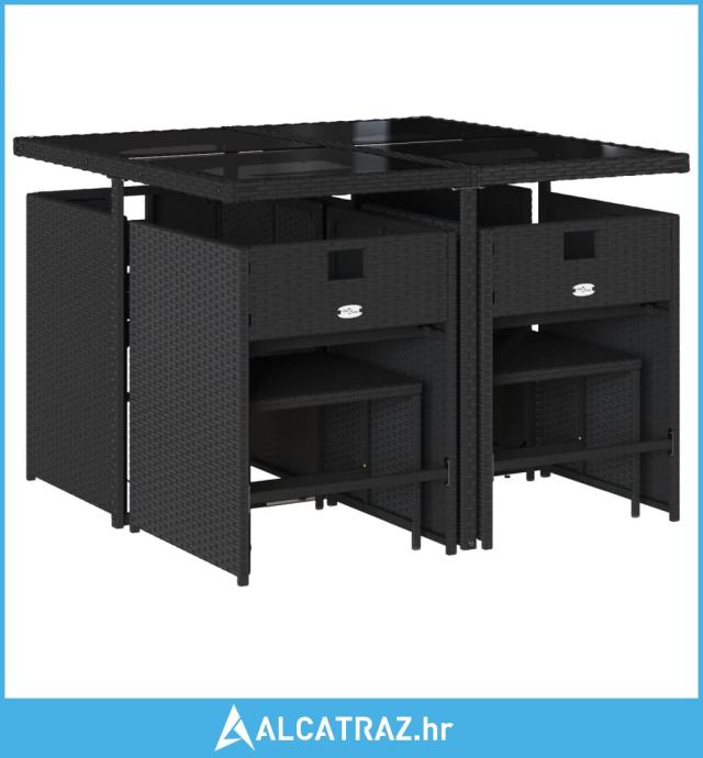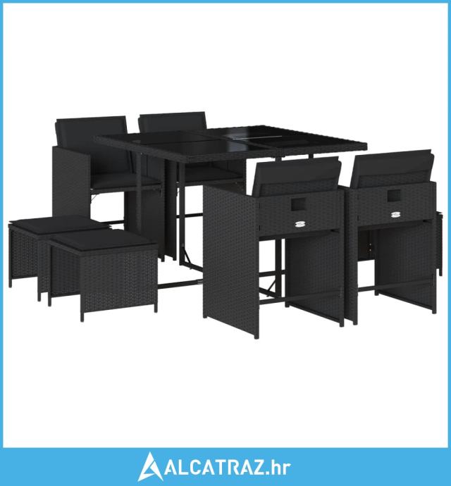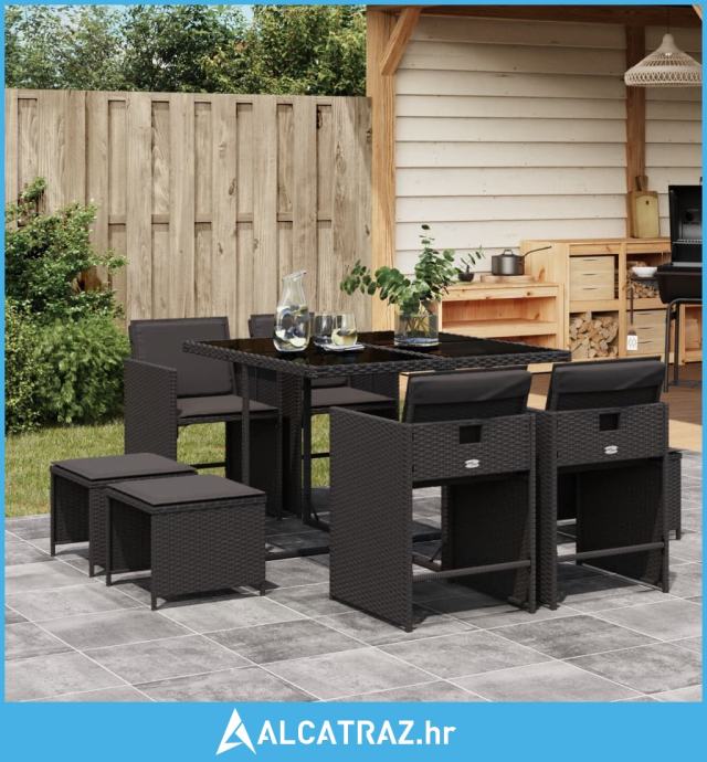 9-dijelni vrtni blagovaonski set s jastucima crni od poliratana - NOVO