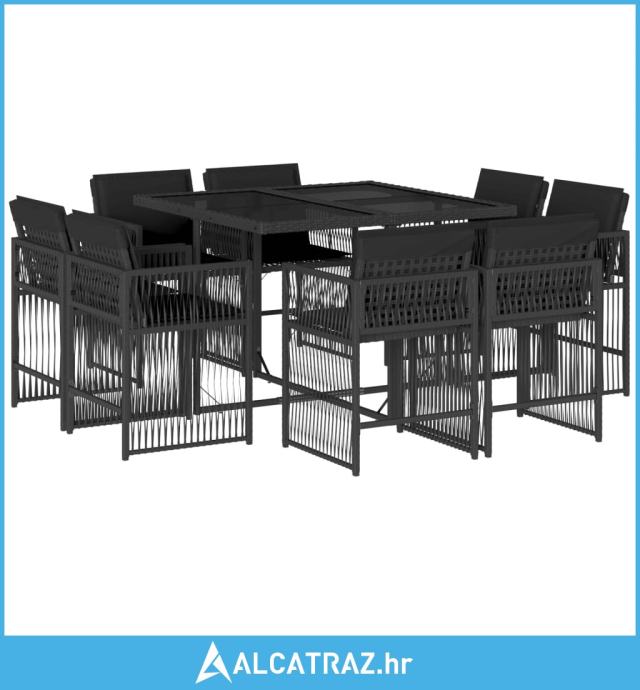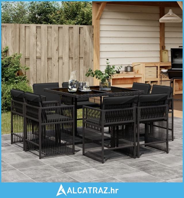 9-dijelni vrtni blagovaonski set s jastucima crni od poliratana - NOVO