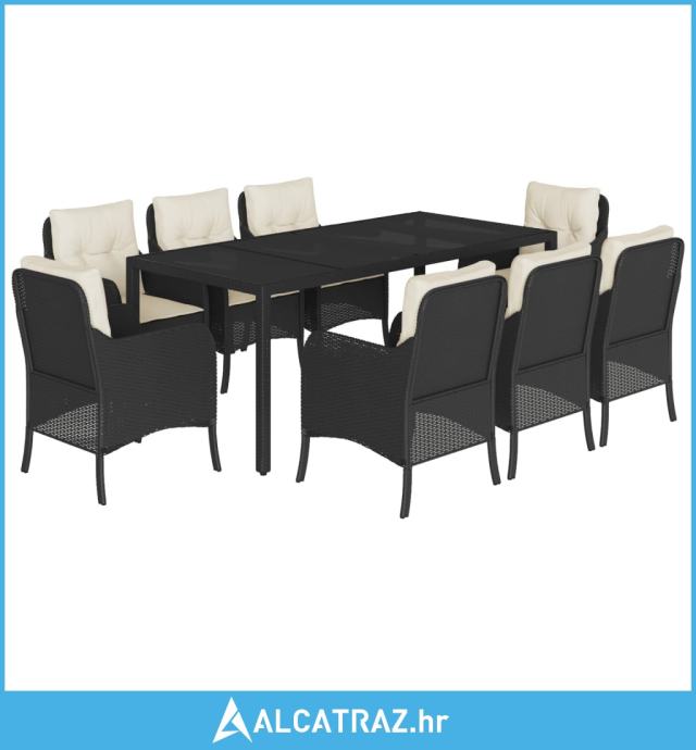 9-dijelni vrtni blagovaonski set s jastucima crni od poliratana - NOVO