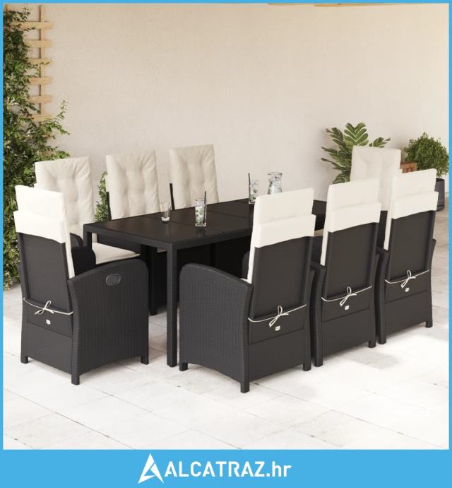 9-dijelni vrtni blagovaonski set s jastucima crni od poliratana - NOVO