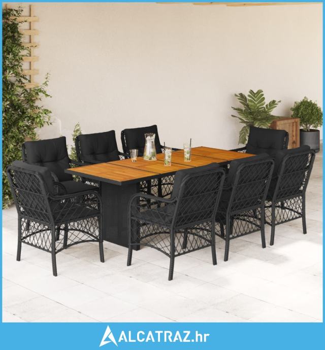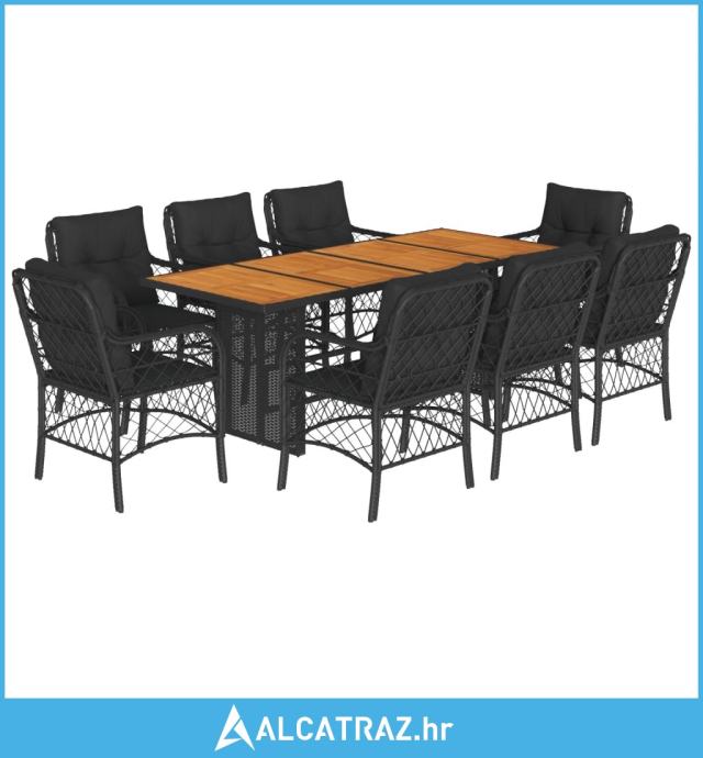 9-dijelni vrtni blagovaonski set s jastucima crni od poliratana - NOVO