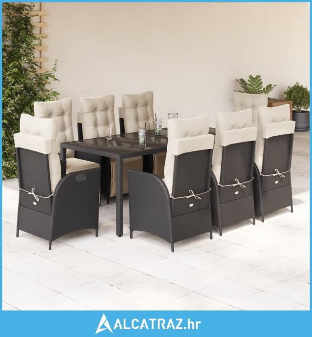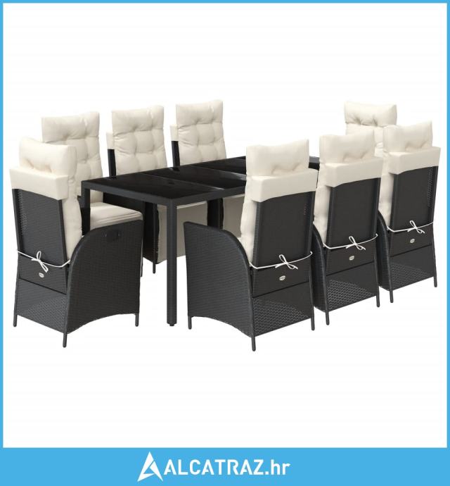 9-dijelni vrtni blagovaonski set s jastucima crni od poliratana - NOVO