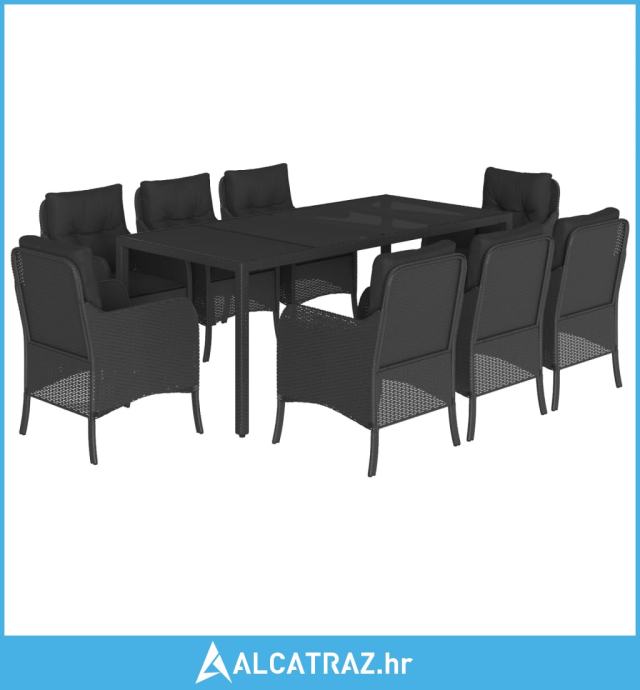 9-dijelni vrtni blagovaonski set s jastucima crni od poliratana - NOVO
