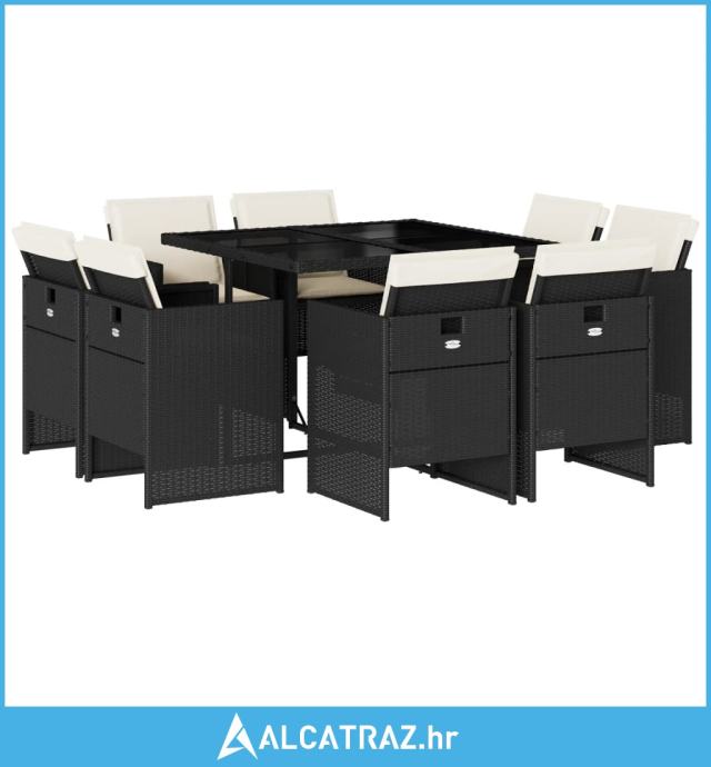 9-dijelni vrtni blagovaonski set s jastucima crni od poliratana - NOVO