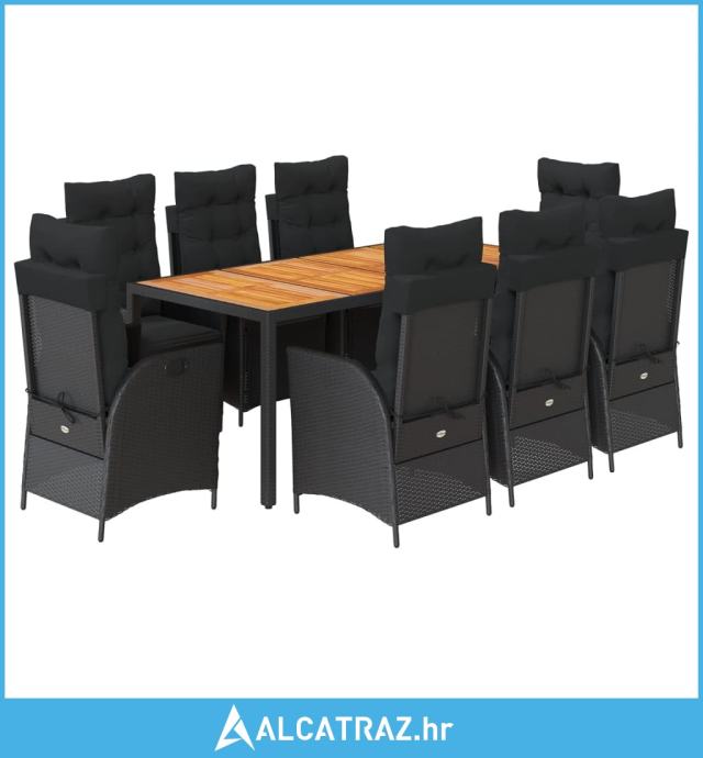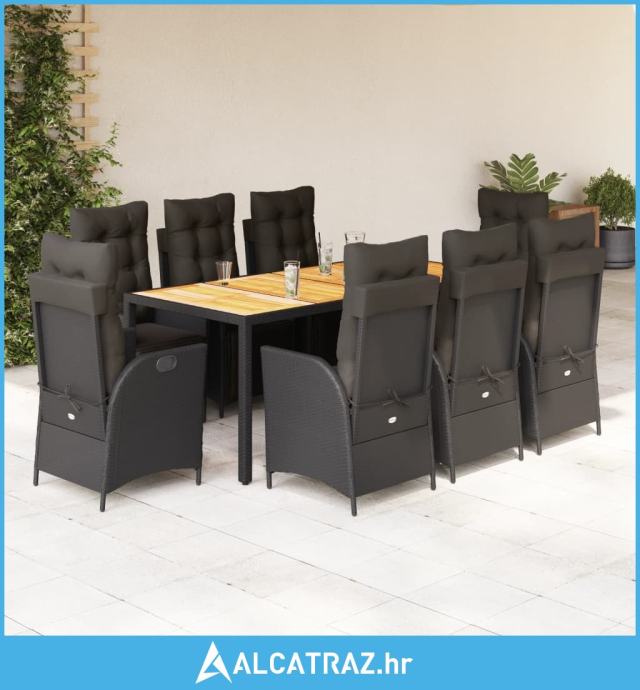 9-dijelni vrtni blagovaonski set s jastucima crni od poliratana - NOVO