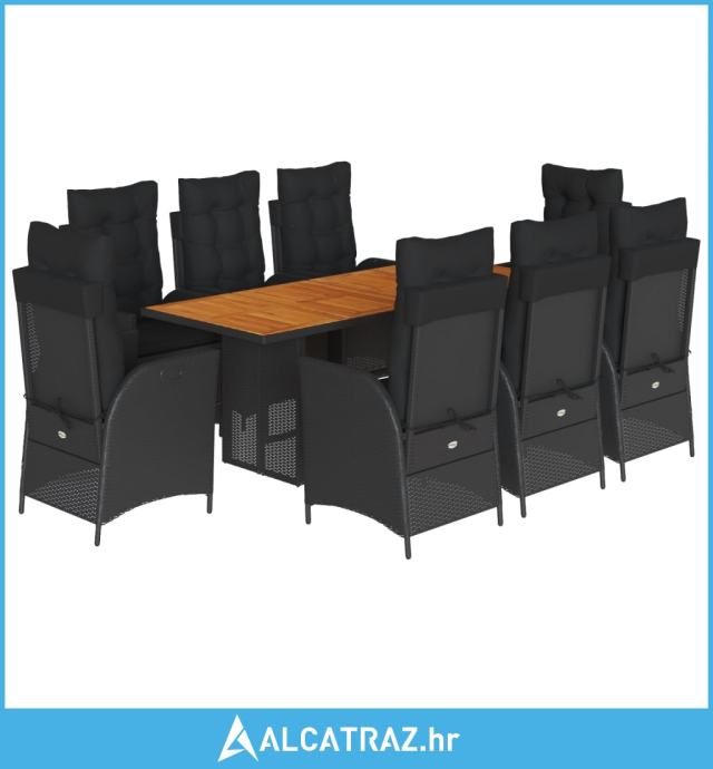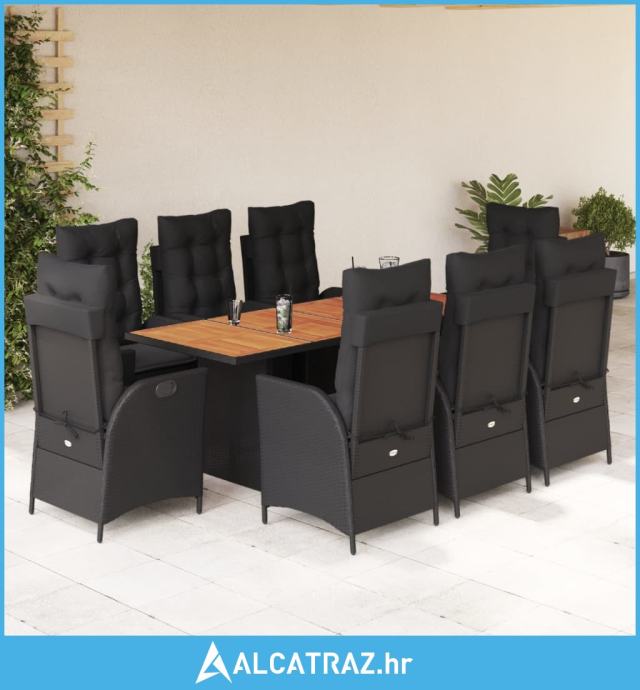 9-dijelni vrtni blagovaonski set s jastucima crni od poliratana - NOVO