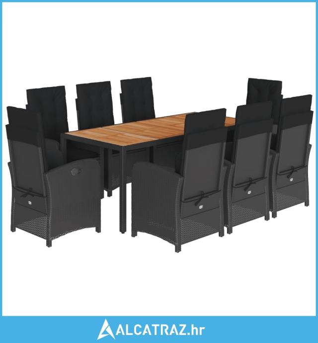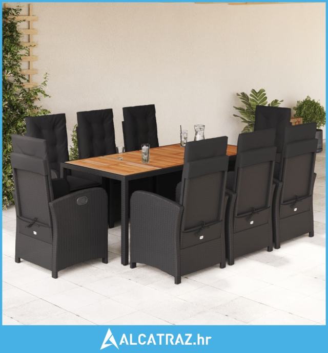 9-dijelni vrtni blagovaonski set s jastucima crni od poliratana - NOVO