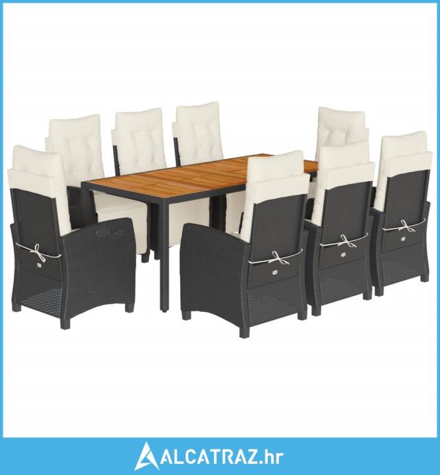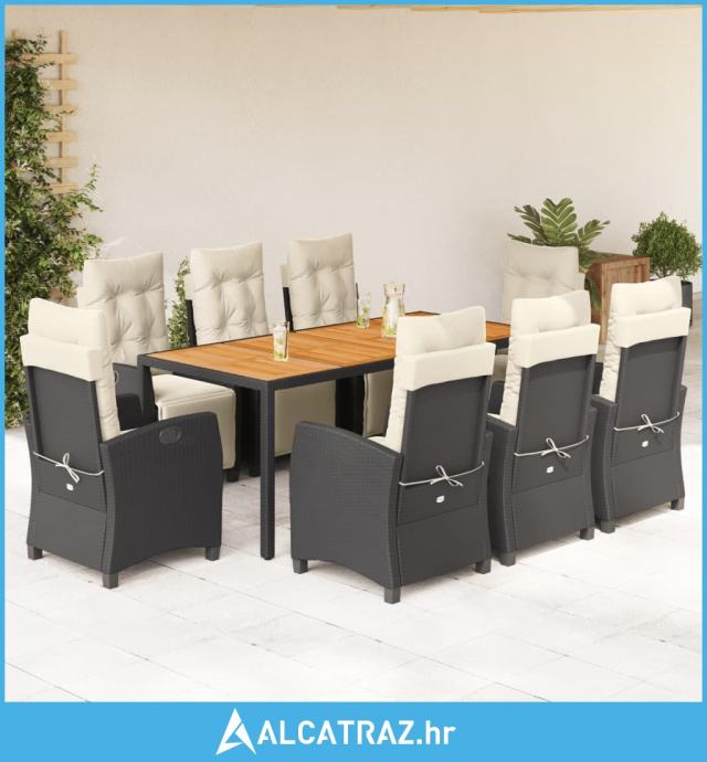 9-dijelni vrtni blagovaonski set s jastucima crni od poliratana - NOVO