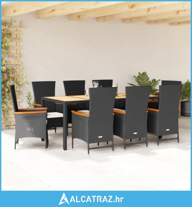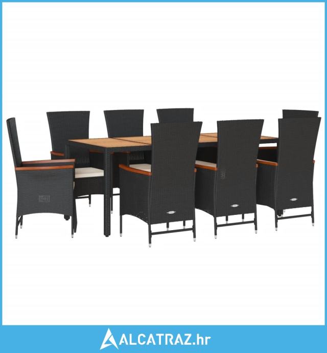 9-dijelni vrtni blagovaonski set s jastucima crni od poliratana - NOVO