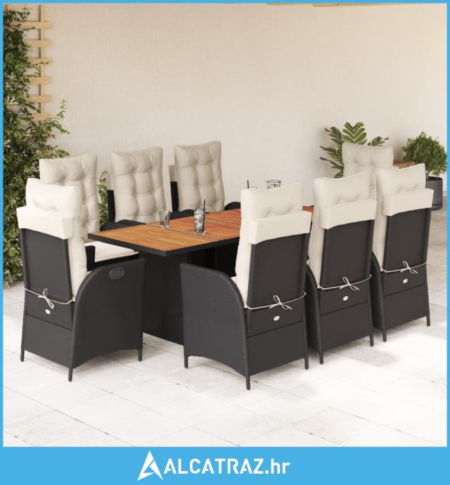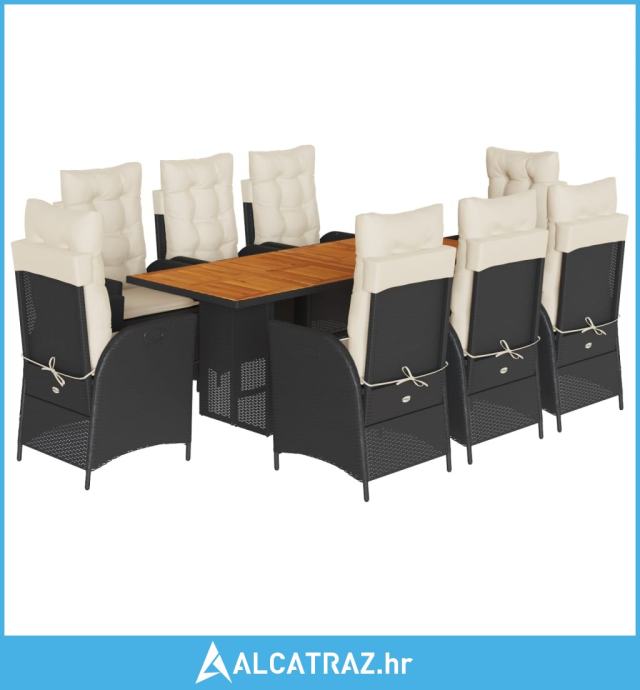 9-dijelni vrtni blagovaonski set s jastucima crni od poliratana - NOVO