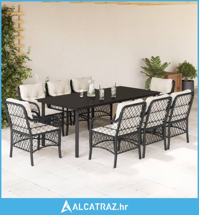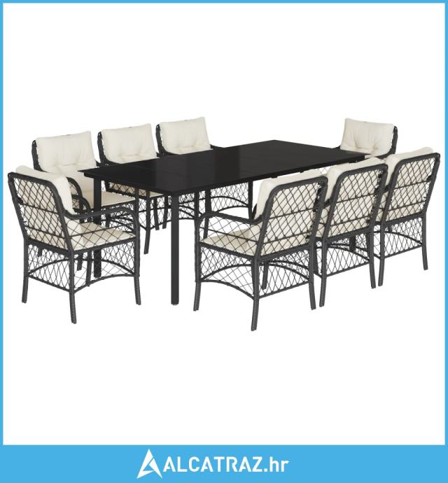 9-dijelni vrtni blagovaonski set s jastucima crni od poliratana - NOVO