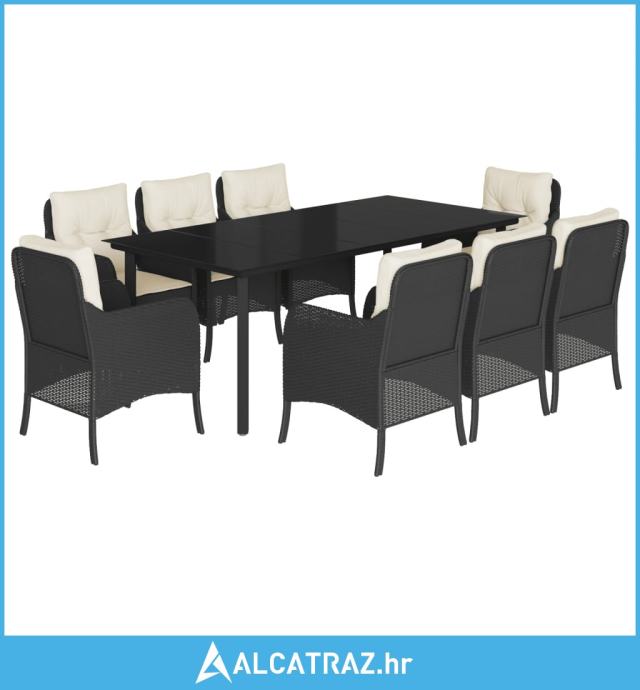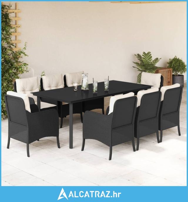 9-dijelni vrtni blagovaonski set s jastucima crni od poliratana - NOVO