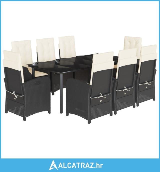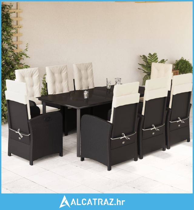 9-dijelni vrtni blagovaonski set s jastucima crni od poliratana - NOVO