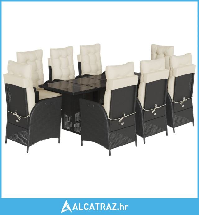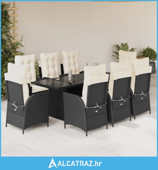 9-dijelni vrtni blagovaonski set s jastucima crni od poliratana - NOVO