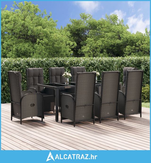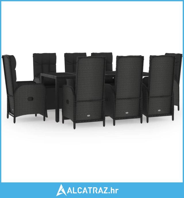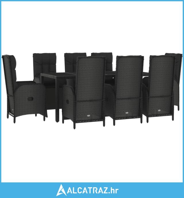 9-dijelni vrtni blagovaonski set s jastucima crni od poliratana - NOVO