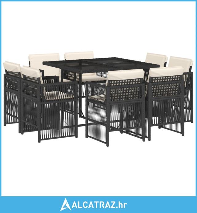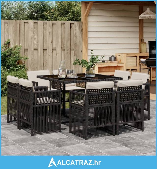 9-dijelni vrtni blagovaonski set s jastucima crni od poliratana - NOVO