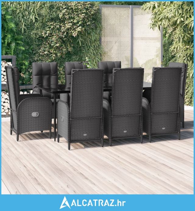 9-dijelni vrtni blagovaonski set s jastucima crni od poliratana - NOVO