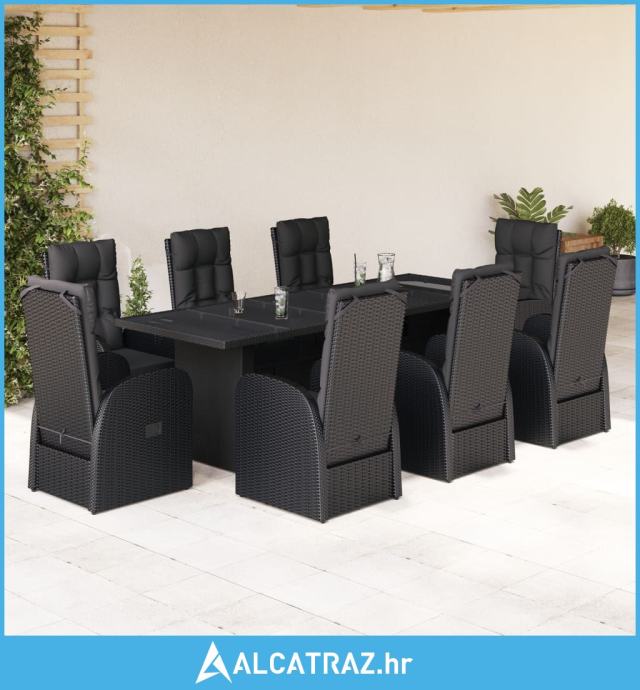 9-dijelni vrtni blagovaonski set s jastucima crni od poliratana - NOVO