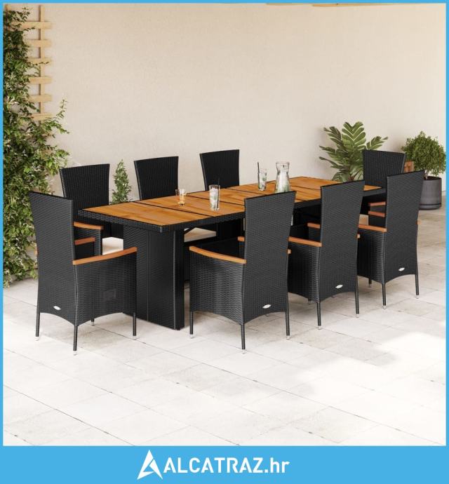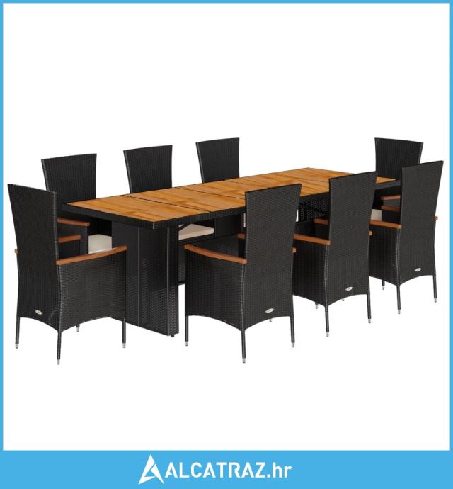 9-dijelni vrtni blagovaonski set s jastucima crni od poliratana - NOVO