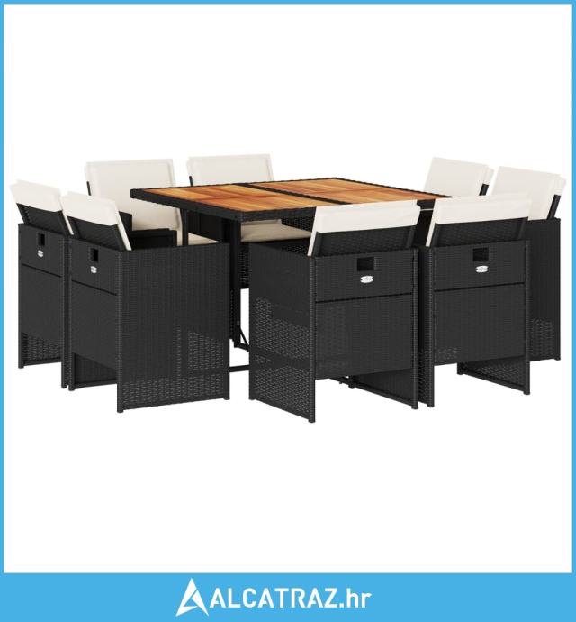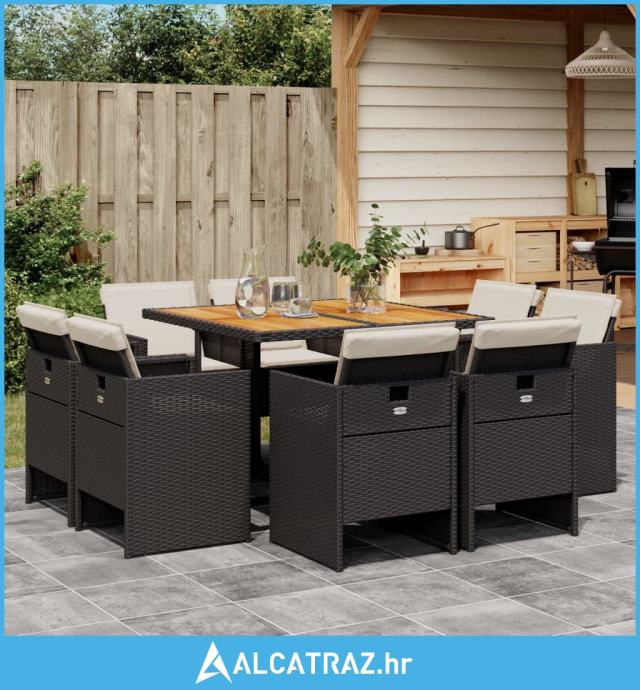 9-dijelni vrtni blagovaonski set s jastucima crni od poliratana - NOVO