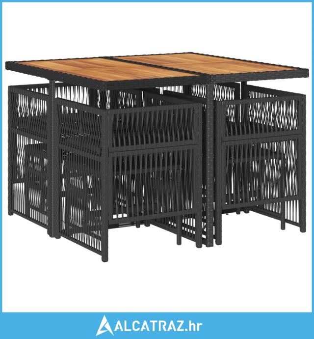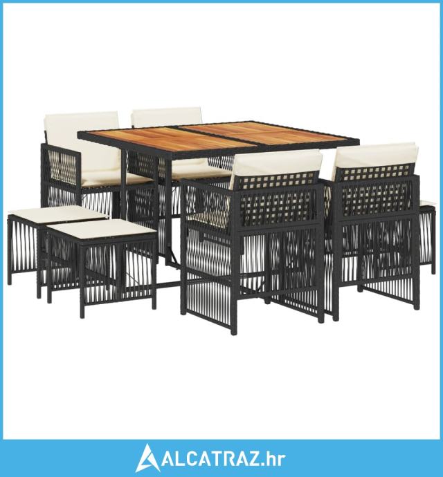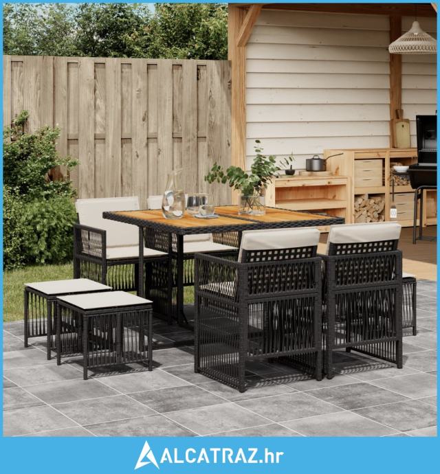 9-dijelni vrtni blagovaonski set s jastucima crni od poliratana - NOVO