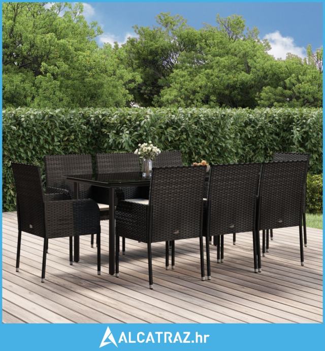 9-dijelni vrtni blagovaonski set s jastucima crni od poliratana - NOVO