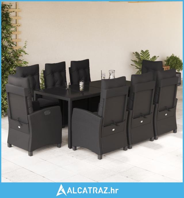 9-dijelni vrtni blagovaonski set s jastucima crni od poliratana - NOVO