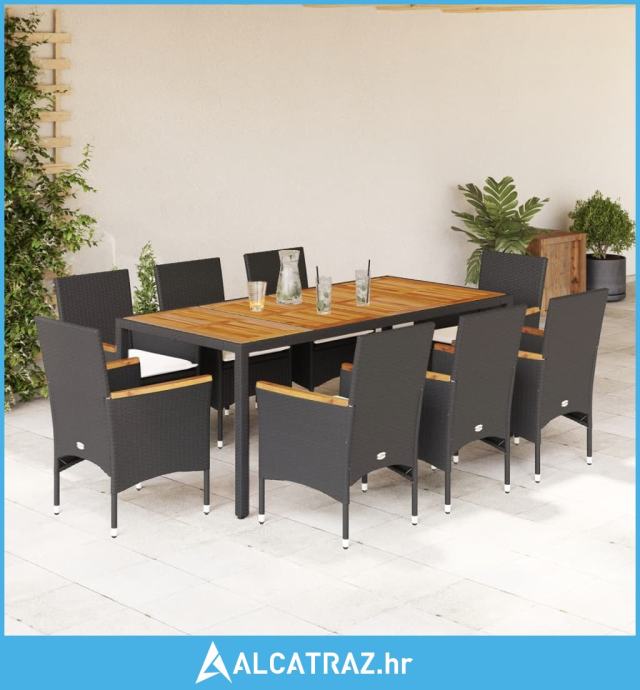 9-dijelni vrtni blagovaonski set s jastucima poliratan i bagrem - NOVO