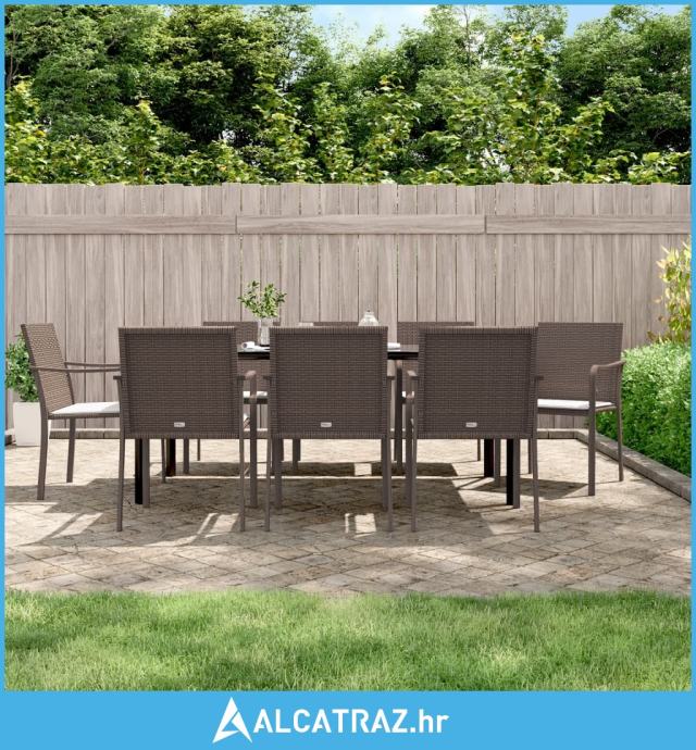 9-dijelni vrtni blagovaonski set s jastucima poliratan i čelik - NOVO
