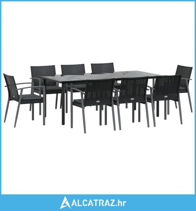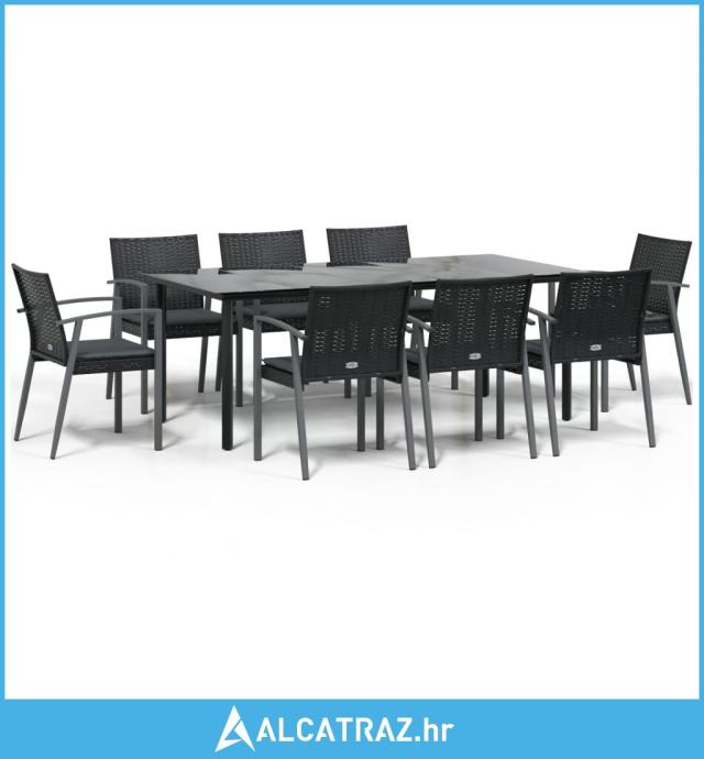 9-dijelni vrtni blagovaonski set s jastucima poliratan i čelik - NOVO