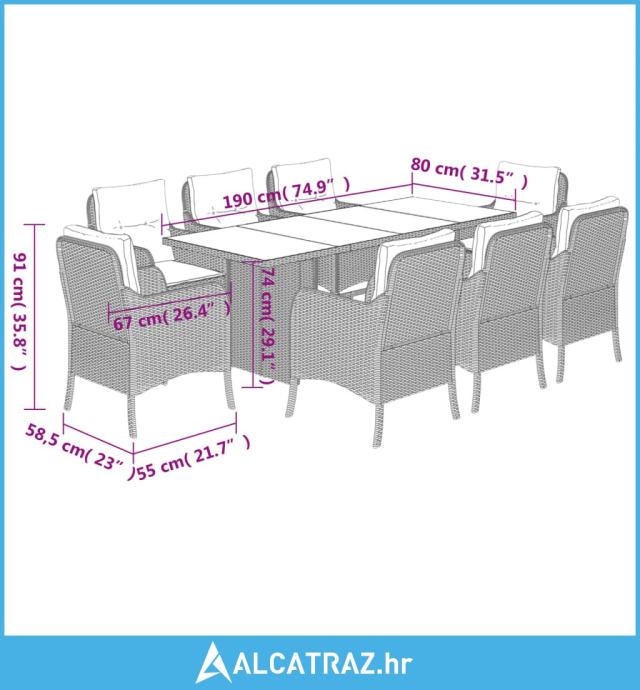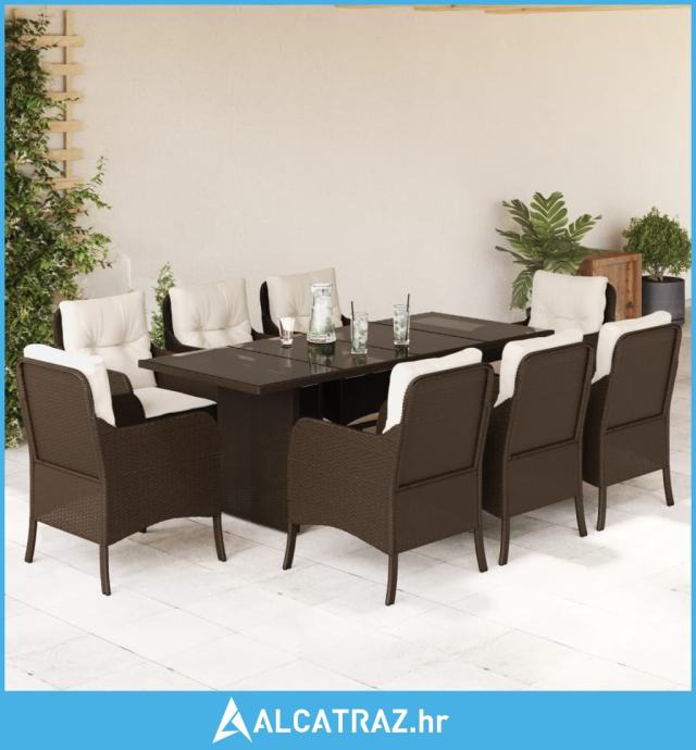 9-dijelni vrtni blagovaonski set s jastucima poliratan smeđi - NOVO