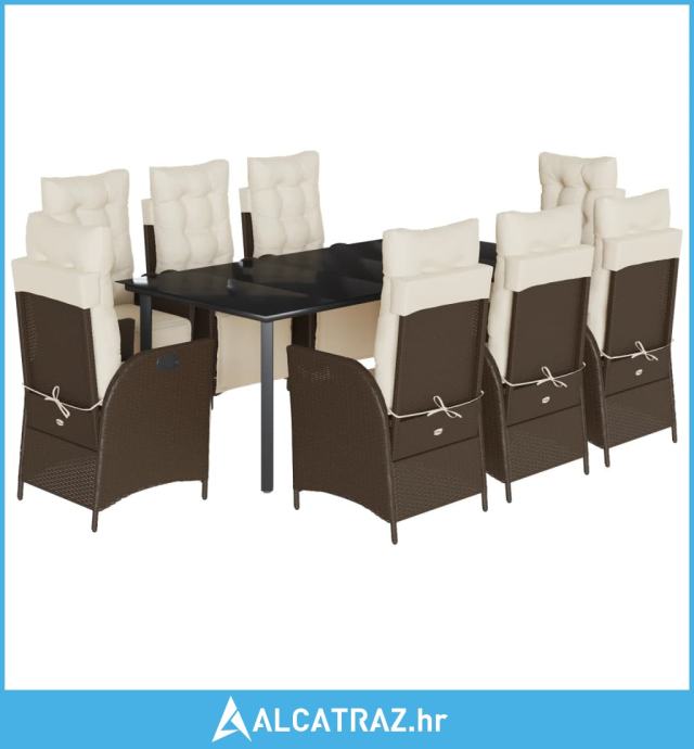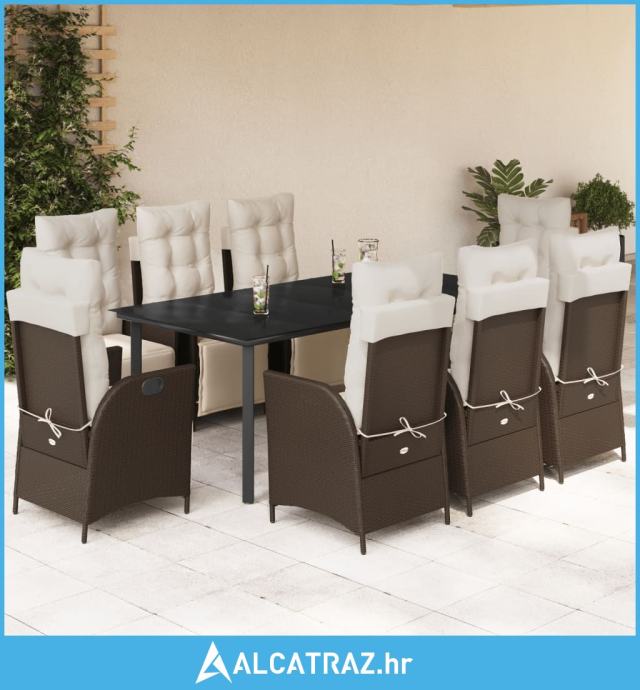 9-dijelni vrtni blagovaonski set s jastucima poliratan smeđi - NOVO